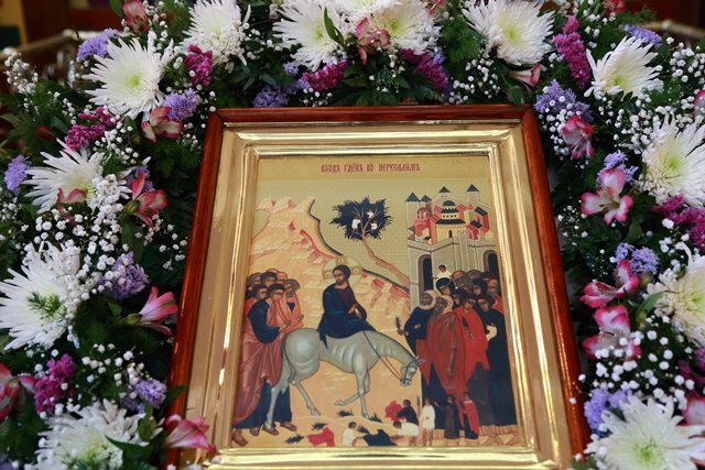Он вступает в столицу Израильского царства, во святой град Иерусалим, сидя на молодом осле, сопровождаемый множеством народа. Все соединилось для того, чтобы встреча эта была самою торжественною: толпы людей следовали за Иисусом Христом от Вифании до Иерусалима; одни при этом постилали на дороге свои одежды, другие резали зеленые пальмовые ветви и бросали их по пути шествия Спасителя или потрясали ими в воздухе. Картина представлялась очень торжественная и трогательная: это было одно из самых лучших и радостных событий в земной жизни Спасителя. Сопровождавшие и встречавшие Иисуса Христа приветствовали Его восторженными возгласами, восклицая: Осанна Сыну Давидову! благословен Грядущий во имя Господне! мир на небесах и слава в вышних! (ср.: Мф.21:9; Лк.19:38).
